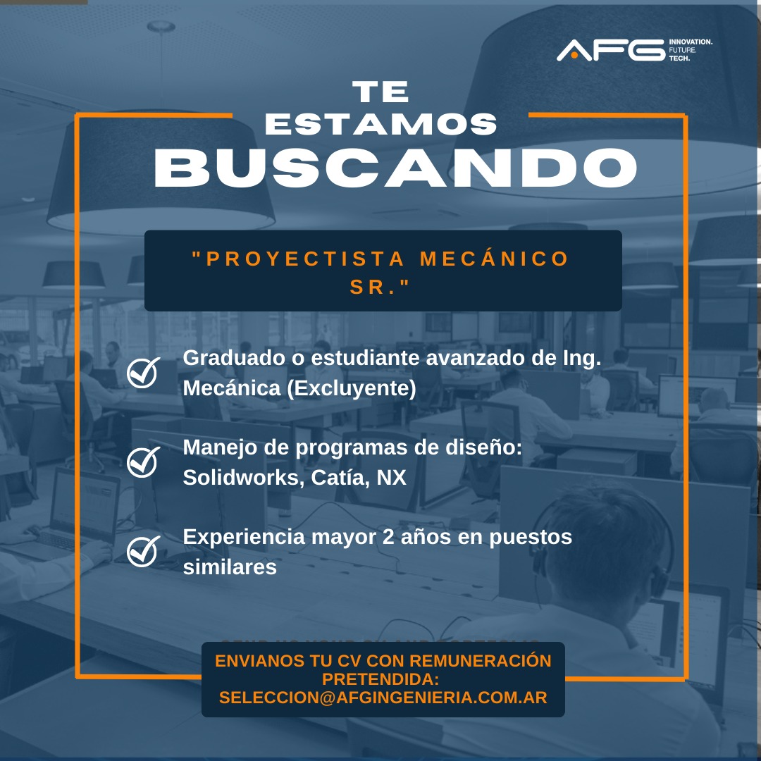 ¡Estamos buscando un Proyectista Mecánico para unirse a nuestro equipo en AFG INGENIERIA SRL! Si eres un estudiante avanzado o intermedio de ingeniería mecánica y posees habilidades técnicas excepcionales, esta puede ser la oportunidad perfecta para ti.